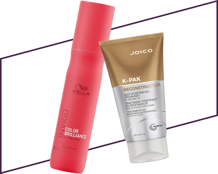 Kjenner du at håret føltes tørt kan du gi det ekstra pleie og fuktighet med å bruke en god hårkur. Her kan du også finne produkter som er tilpasset eksponering av sol. Noen fungerer også som usynlige masker som du kan ha i håret mens du gjør andre ting. Er du usikker på din hårtype og hva du bør velge så hør med din frisør. Din faste frisør kjenner ditt hår og hodebunn best og har best forutsetning for å gi deg de beste anbefalingene. Bilde: Wella Invigo Color Brilliance Miracle BB Spray og Joico K-Pak Reconstructor Deep-Penetrating Treatment.